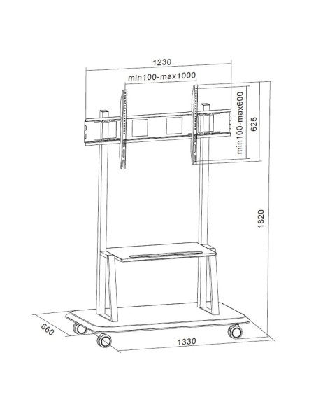 Stuart è un carrello per TV di grandi dimensioni, fino a 120 pollici, con una portata di 150 Kg complessivi. Potrai usarlo sia per l'arredo della casa sia per allestire sale riunioni o conferenza in ufficio ed essendo fornito di pratiche ruote frenate, potrai spostarlo molto agevolmente. Nelle sue solide mensole in metallo potrai alloggiare tutti gli accessori audio e video che ti servono.